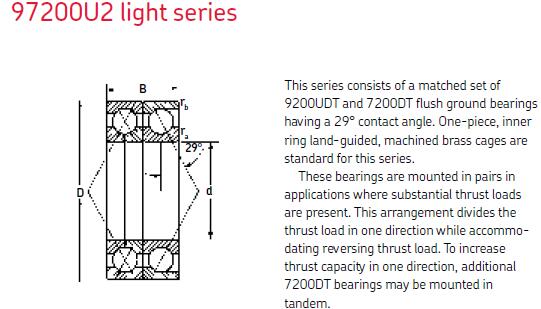 MRC 97232UP2角接觸球軸承尺寸為:內徑:160mm,外徑:290mm,厚度:96mm,類型:97200 U2中預載系列配對使用角接觸球軸承,油潤滑參考轉速:1700轉/分鐘,脂潤滑參考轉速:1300轉/分鐘,精度等級:ABEC-1,產地:美國。